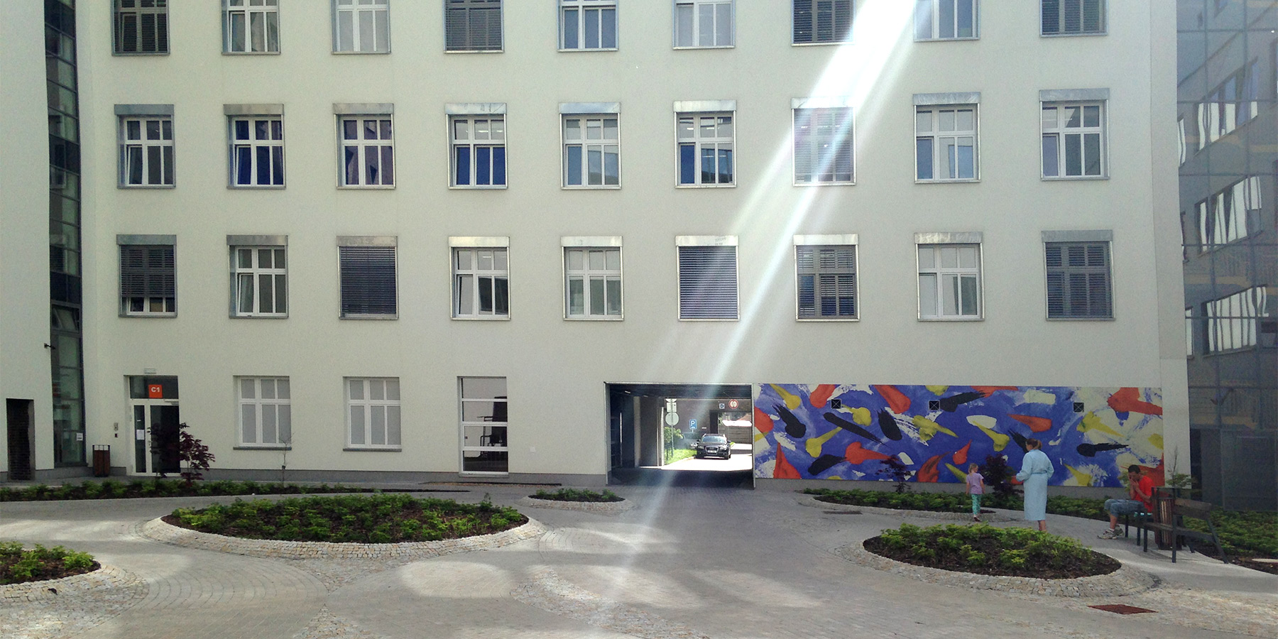 Jedním z hlavních sjednocujících prvků jsou horizontální lamely, které se objevují na různých místech fasád, včetně nových nástavbách strojoven na střechách. Tyto strojovny jsou opláštěny lamelami z pororoštových dílců, což podtrhuje jejich technicistní vzhled.